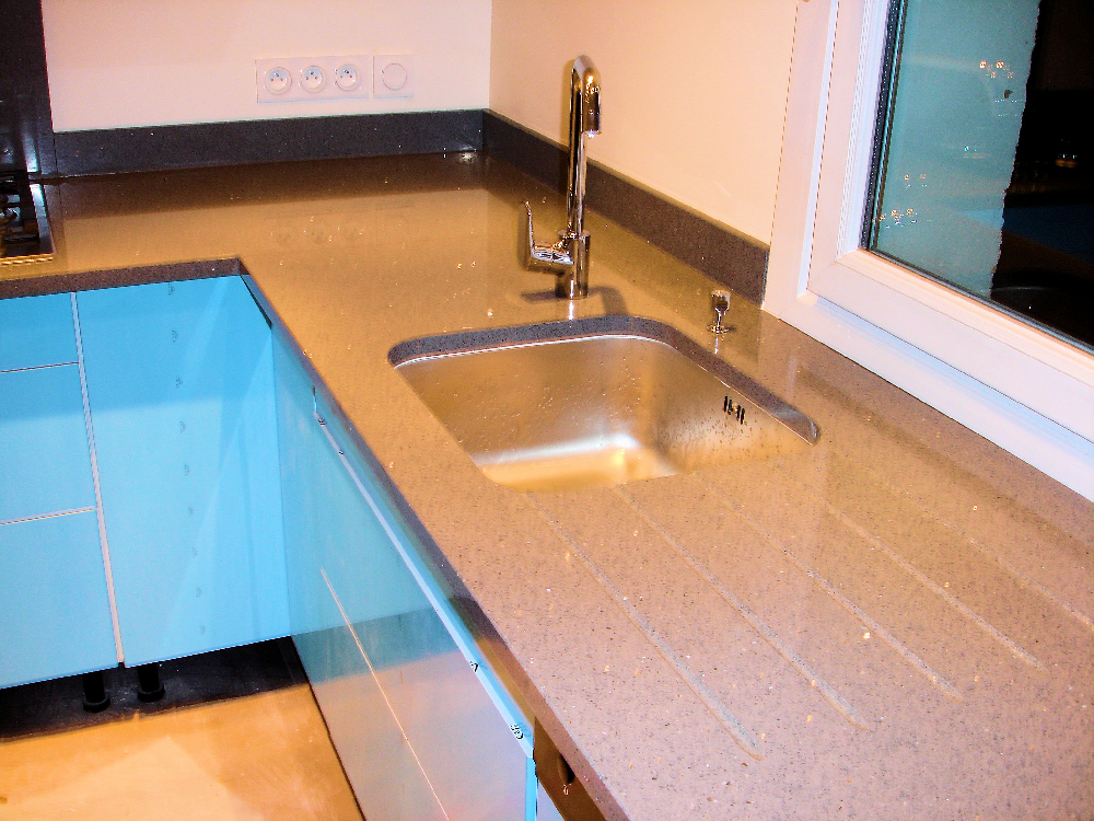 Plan de travail en granit ou compact quartz , de la prise de mesure a la pose . Echantillons visible en magasin