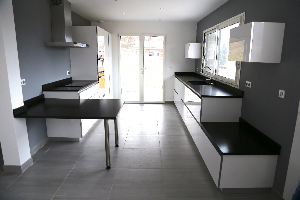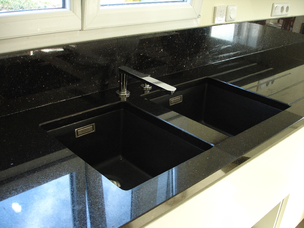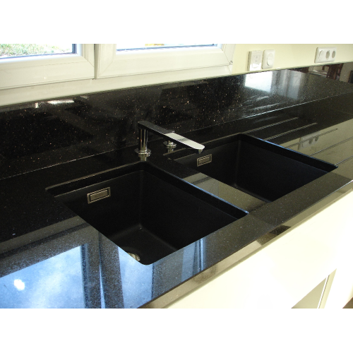 Exemple sur photo plan de travail posé par nos soins en granit noir galaxy