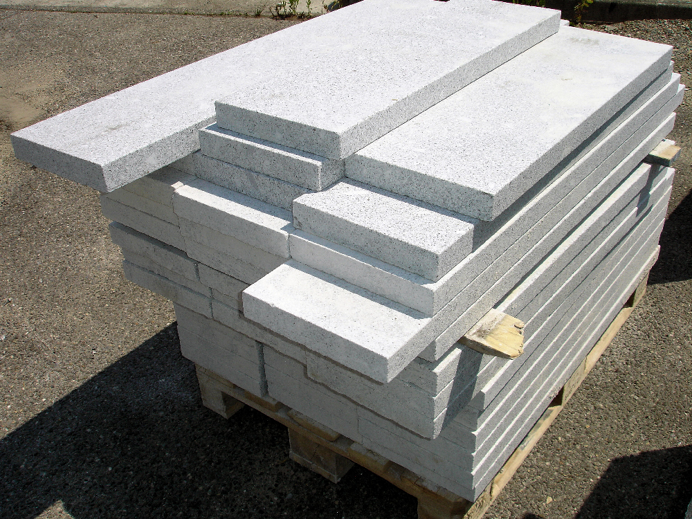 Tablette en granit gris ou beige finition sablée, section 28x5 cm longueur variable 80 a 140 cm.