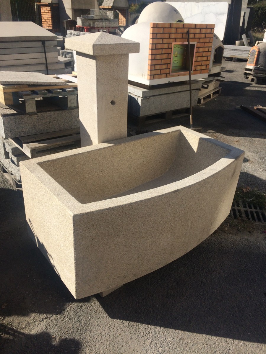 Bassin en pierre granit beige avec colonne pour ecoulement .